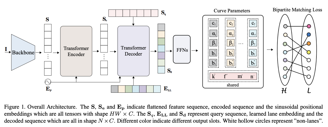 이러한 문제를 해결하기 위해 차선 형태 모델의 매개 변수를 직접 출력하는 종단 간 방법(end-to-end method)을 제안한다. 이 방법은 transformer로 구축된 네트워크를 사용하여 더 풍부한 구조와 맥락을 학습합니다. 차선 형태 모델은 도로 구조와 카메라 포즈를 기반으로 하여 네트워크 출력 매개 변수의 물리적 해석을 가능하게 한다. transformer는 self-attention 메커니즘을 사용하여 nonlocal interactions을 모델링하여 가느다란 구조와 글로벌 컨텍스트를 보다 효과적으로 포착한다.