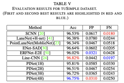 PINet은 TuSimple 및 CULane 데이터 세트 모두에서 교육을 받았으며, 장애물이 적은 고속도로 환경으로만 구성되어 있기 때문에 TuSimple이 비교적 단순합니다.
