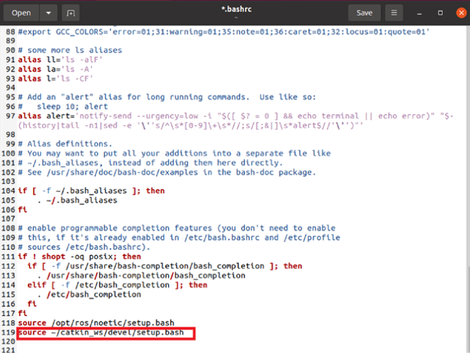 모든 터미널 세션에서 워크스페이스 패키지에 액세스할 수 있도록 이 명령을 .bashrc 파일에 추가합니다. catkin 작업 공간을 설정하는 절차를 수행하면 다음 단계가 나타납니다.