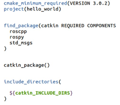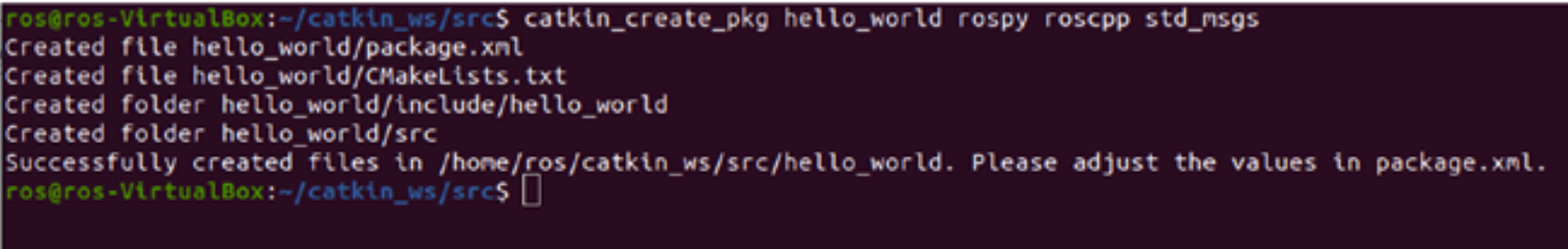 $ catkin_create_pkg hello_world roscpp rospy std_msgs