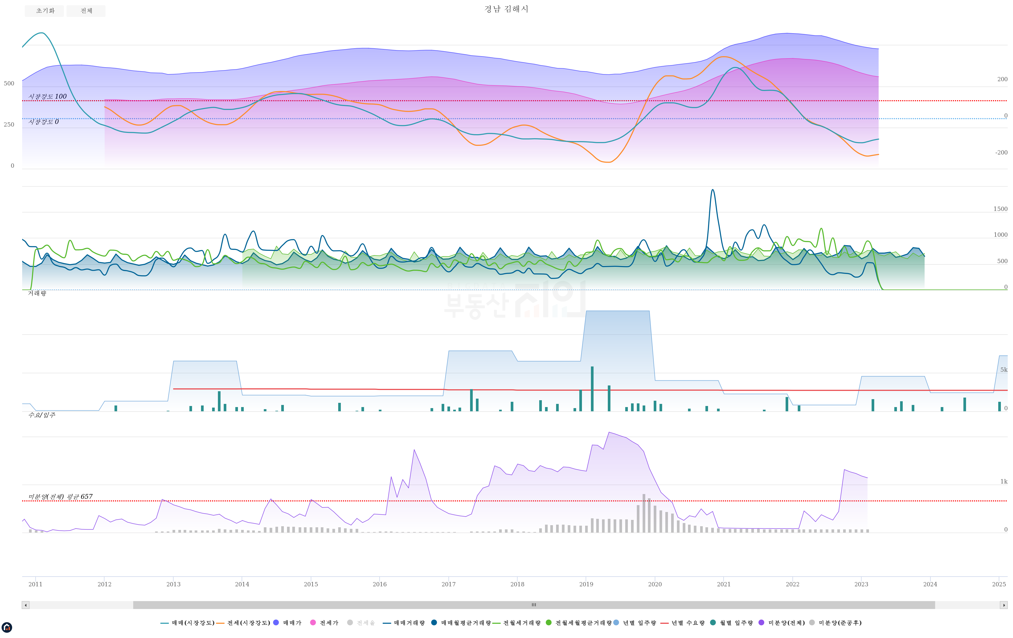23년 4월 19일 경상남도 부동산 추이(시장강도, 매매가, 전세가, 거래량, 수요공급, 미분양)