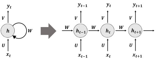 순환 신경망(RNN, Recurrent Neural Network)은 은닉계층이 입력계층과 이전 타임스텝의 은닉계층으로부터 정보를 받는 모델이다. 이러한 특성에 의해 CNN과 DNN과 달리 순환 신경망은 지난 정보를 기억할 수 있다. 이를 기반으로 원소들간 특정 순서를 가져 상호독립적이지 않은 시퀀스 데이터를 처리 가능하다. 순환 신경망은 이미지 캡셔닝(captioning)이나 언어 번역과 같은 데이터를 학습하는데 주로 사용된다.