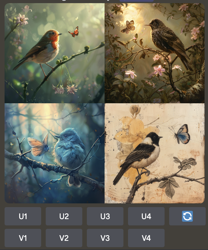 - Low Variation Mode: 새와 나비의 기본 위치는 유지되지만, 날개의 각도나 주변 잎사귀의 모양 등 세부 사항이 미묘하게 변경될 수 있습니다.