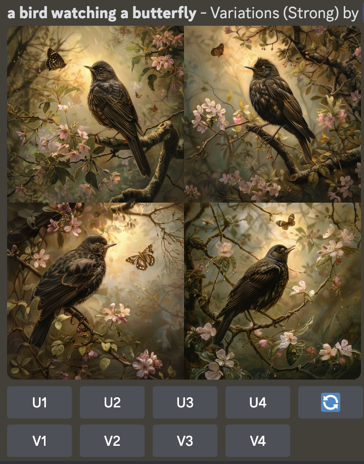 🪄 Vary (Strong)버튼이🎨 High Variation Mode에,🪄 Vary (Subtle)버튼이🎨 Low Variation Mode에 해당합니다. 이 버튼들은 개인 설정을 무시합니다.