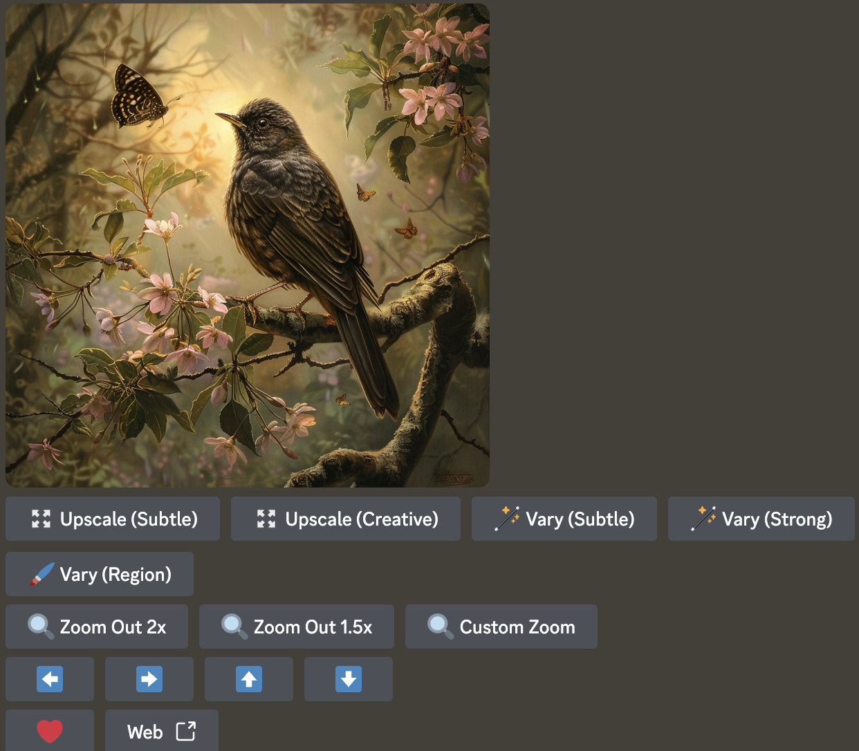V버튼 클릭 또는 확대된 이미지 아래🪄 Vary (Subtle)버튼 클릭
