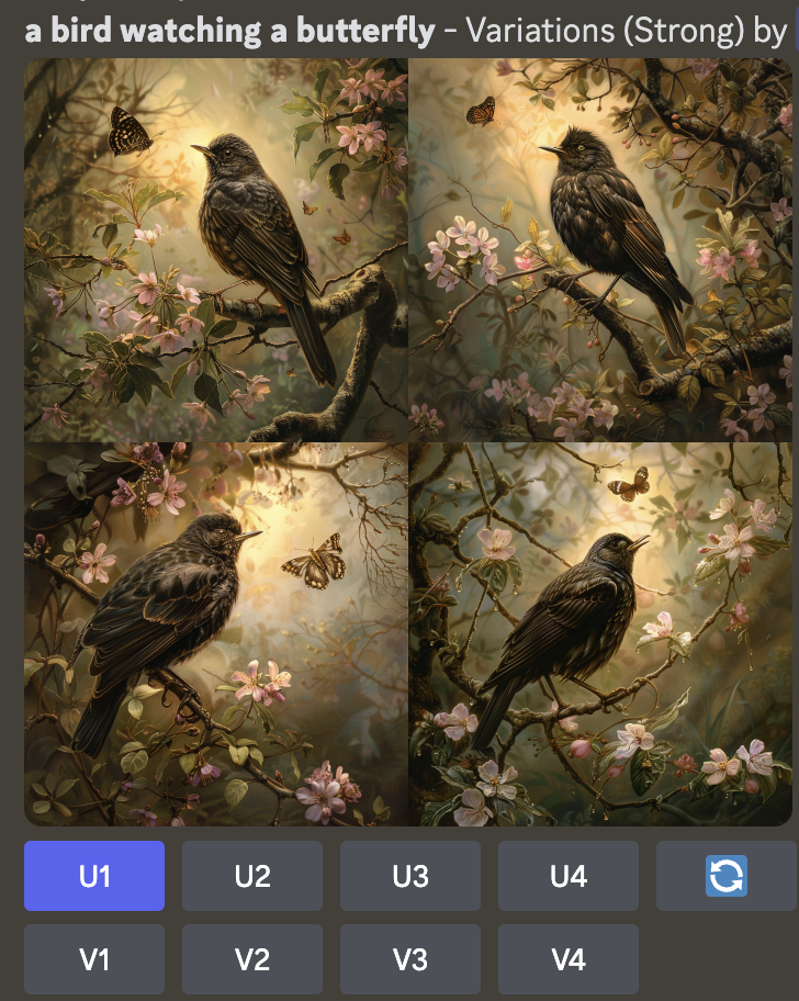 이미지 그리드 아래의U1U2U3U4버튼을 사용하여 원하는 이미지를 그리드에서 분리합니다. - 업스케일 선택하기