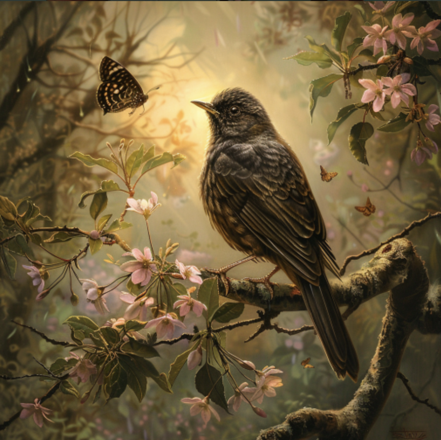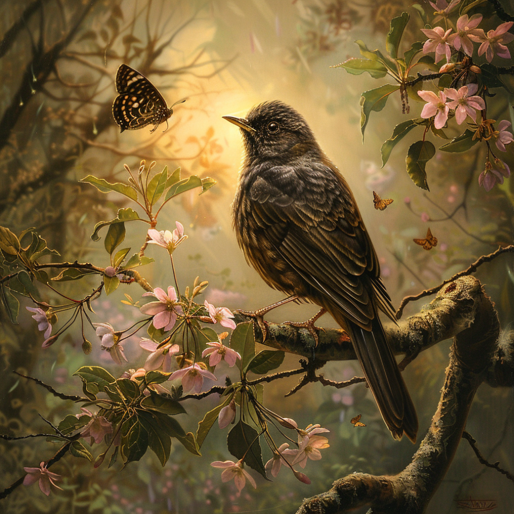 프롬프트: /imagine prompt a bird watching a butterfly