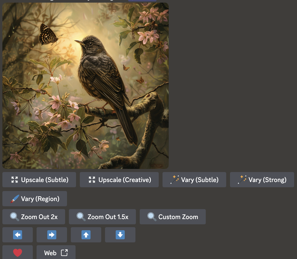 Upscale (Subtle)또는Upscale (Creative)버튼을 클릭하여 이미지를 업스케일합니다.
