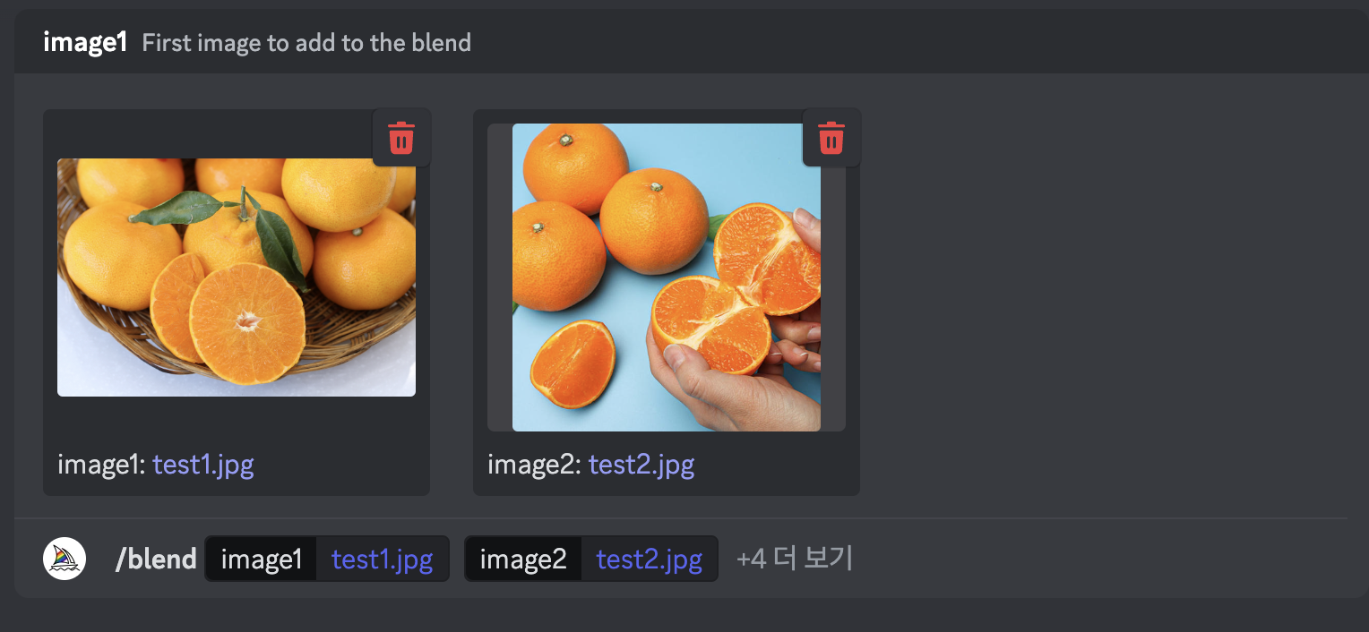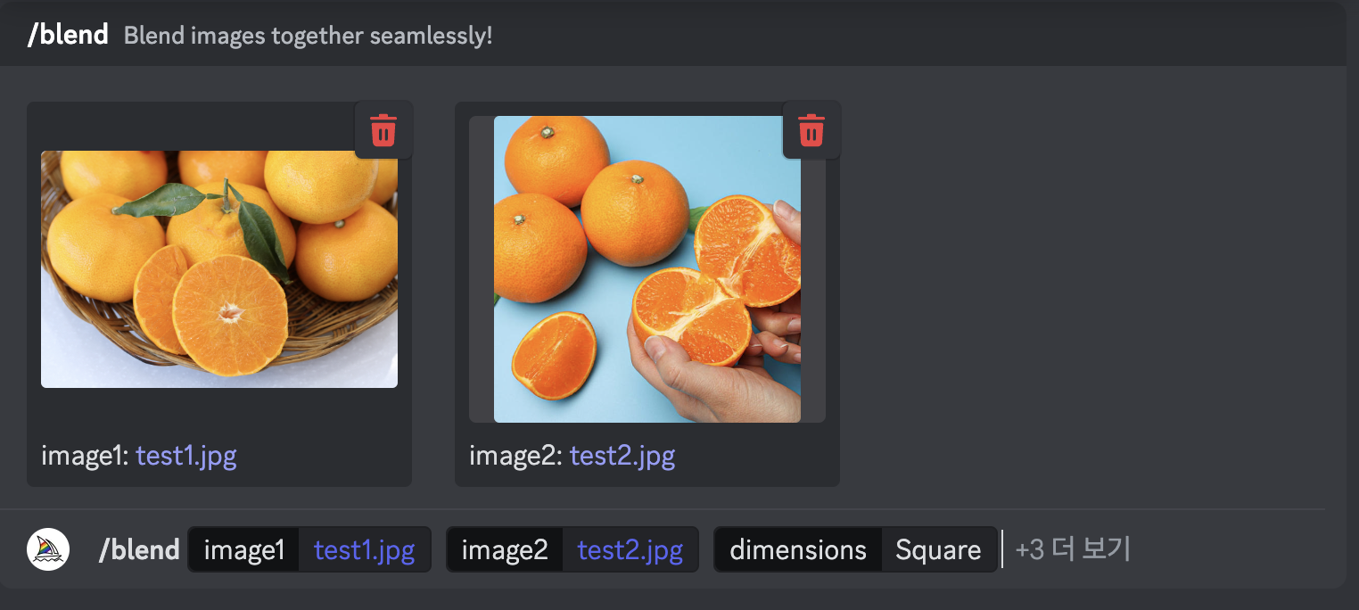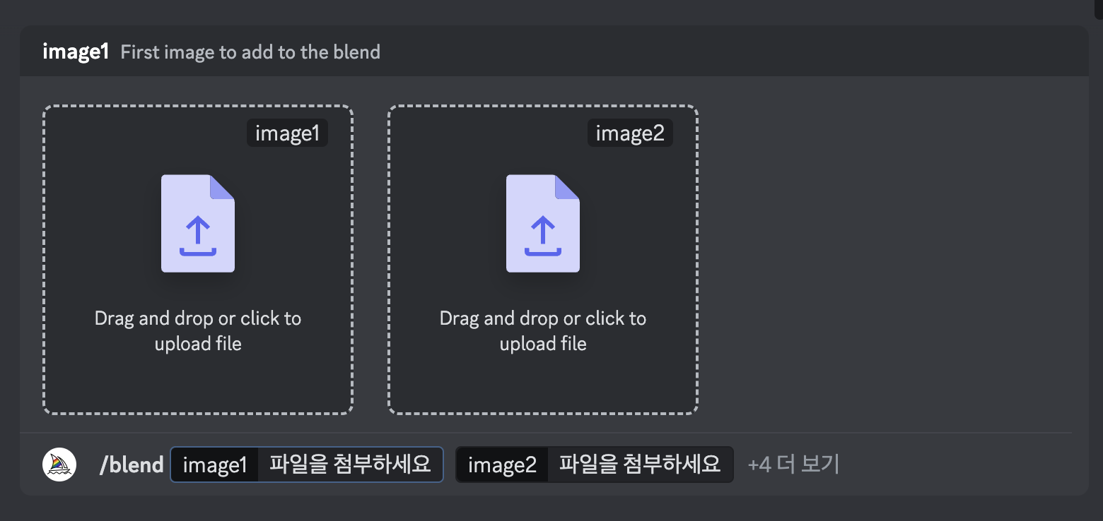 /blend 명령어에도 다른 /imagine 프롬프트와 마찬가지로