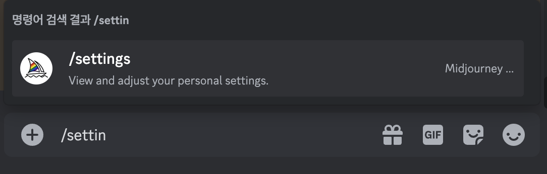 /settings 명령어는 모델 버전, 스타일 값, 품질 값, 업스케일러 버전 등