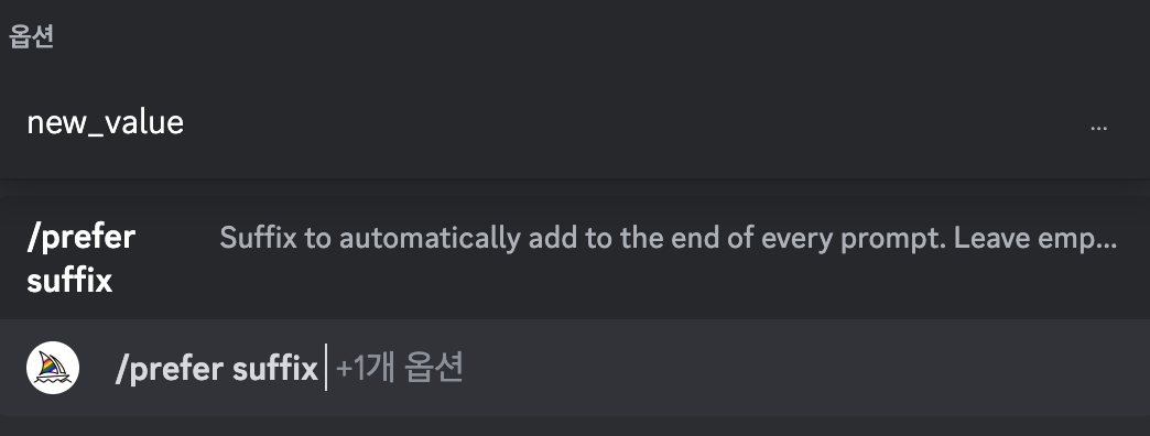 모든 프롬프트 끝에 자동으로 추가될 매개변수나 텍스트를 지정할 수 있습니다.