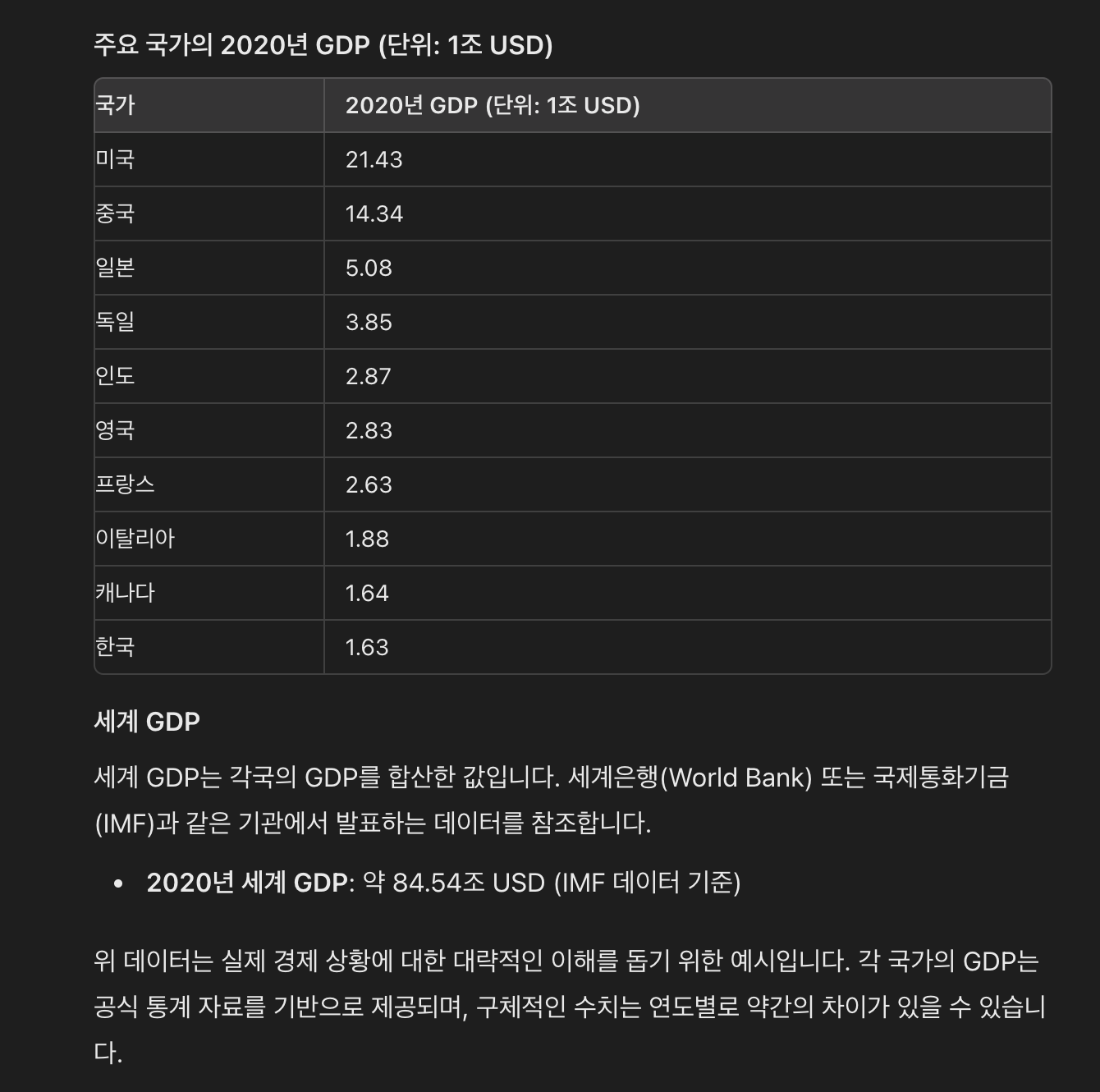 예시: "단계별로 생각해보자: 2020년의 GDP는 얼마인가?"