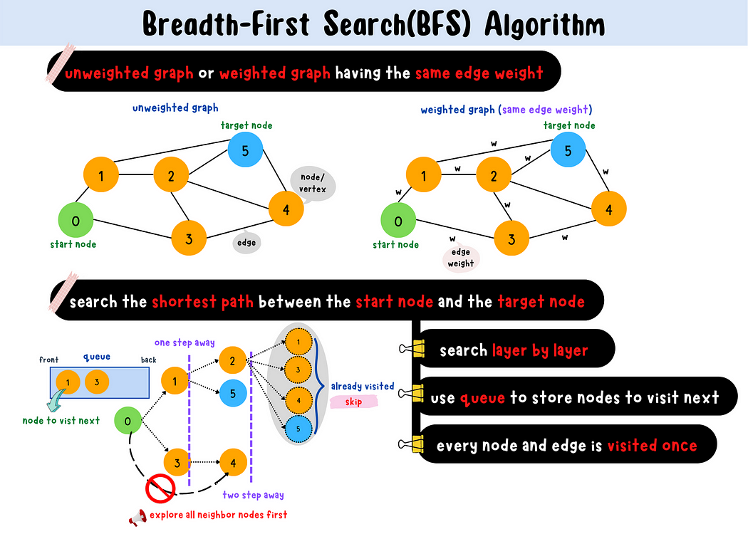 그래프(노드와 엣지로 이루어진 구조)에서 특정 노드를 찾거나, 노드 간의 최적 경로를 찾기 위해 사용하는 알고리즘을 통칭합니다.