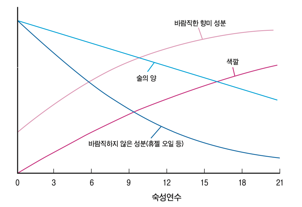 위스키의 제조 과정에서 증류 후에 오크통에 숙성되지 않았다면 위스키라 부를 수 없습니다. 숙성 과정은 맛이 별로 없는 원치 않는 요소를 분해하는 동시에 더 매력적인 맛을 발전시키는데 도움을 줍니다. 숙성 과정에서 위스키가 성숙함에 따라 오크의 조직과 화학 성분은 새로 증류된 위스키에서 불순물과 신맛을 제거하는 동시에 풍부한 향기와 풍미를 불어넣을 수 있게 해줍니다. 하지만 숙성 중에 위스키는 증발을 통해 손실되는데 이때 손실된 위스키는 "천사의 몫(angels’ share)"으로 불립니다. 이러한 오크통에 든 위스키 원액은 1년마다 전체 용량의 약 2%가 자연 증발합니다.