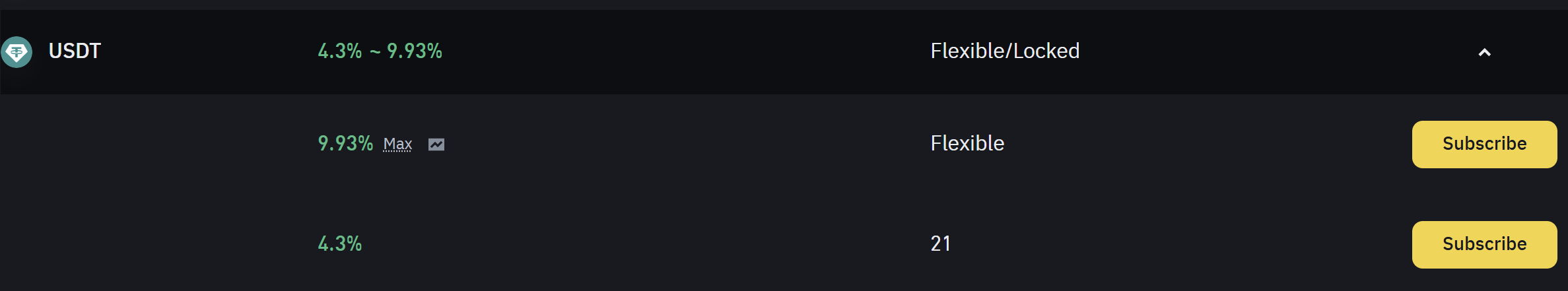 - Flexible 상품: 실시간으로 이자가 적립되며, 매일 Spot Wallet(현물 지갑)으로 지급됩니다