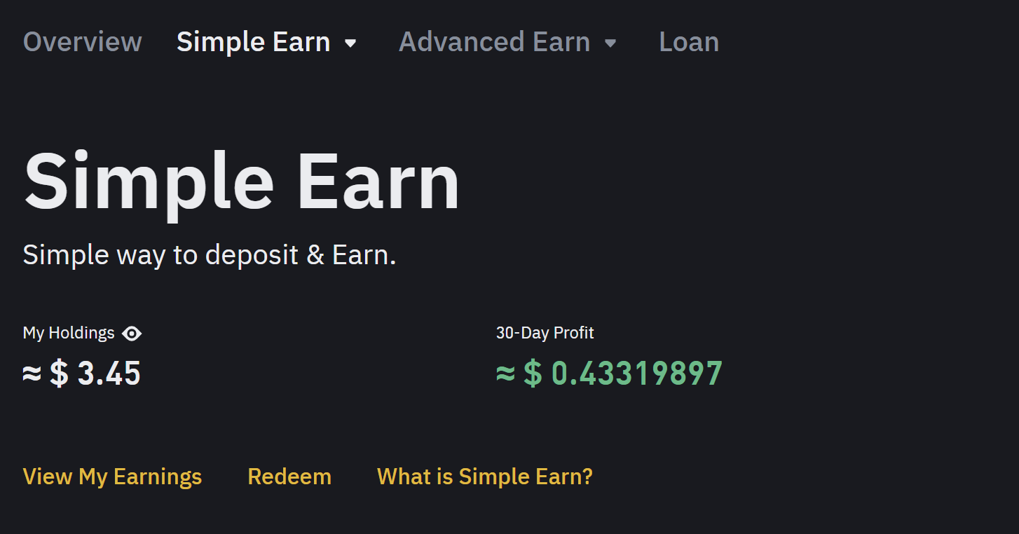 바이낸스의 'Simple Earn: Simple way to deposit & Earn'는