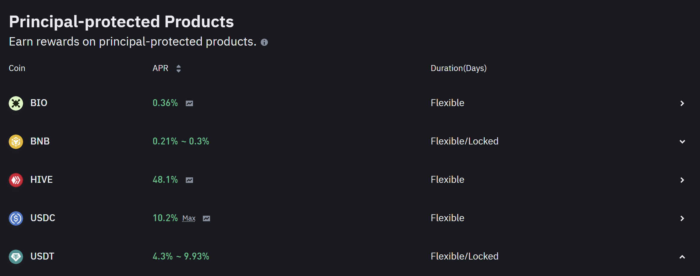 - Flexible 상품은 실시간 APR과 추가 보너스 금리가 적용될 수 있으며, Locked 상품은 고정된 APR이 적용됩니다