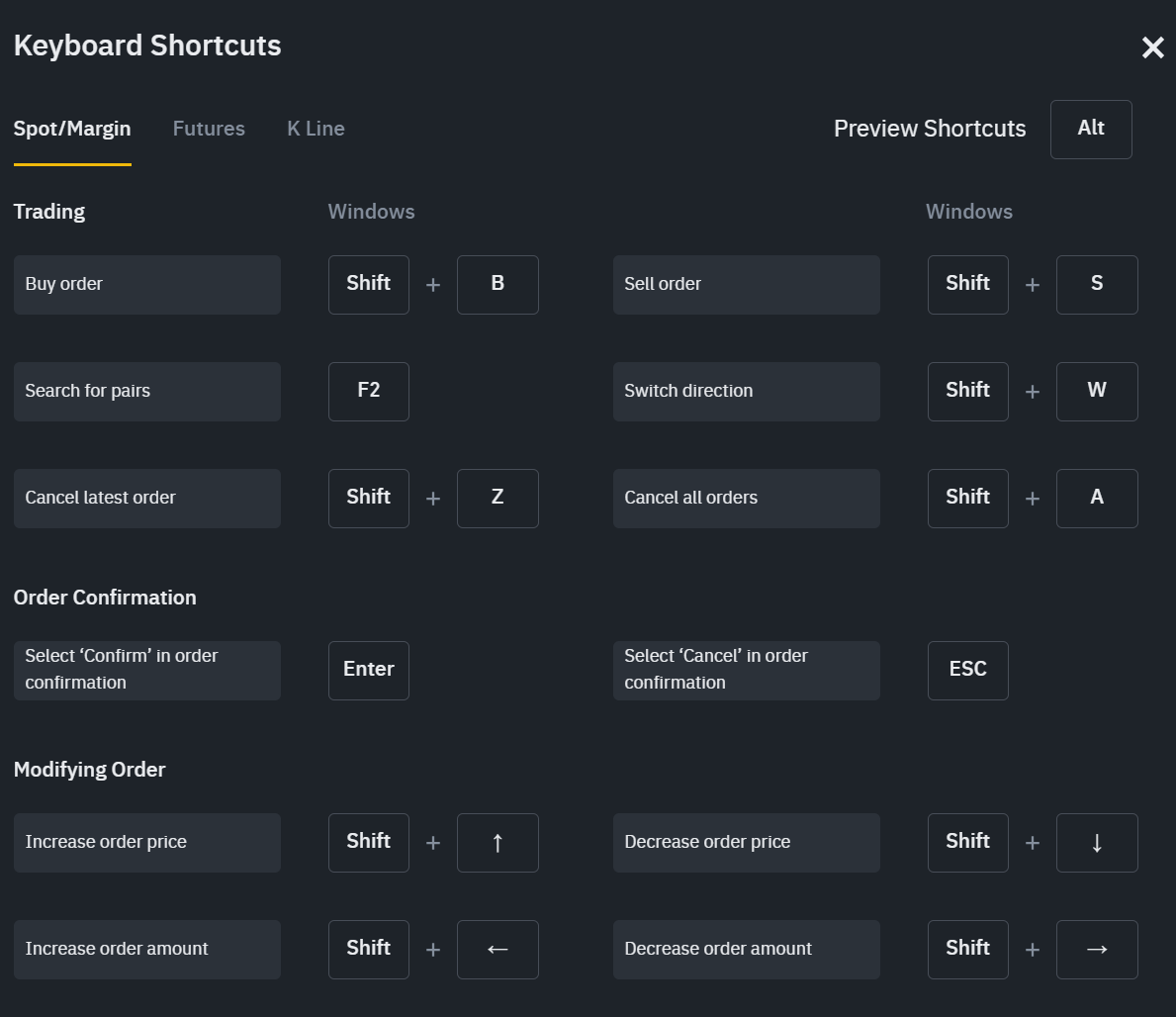 바이낸스 데스크톱 앱 단축키
