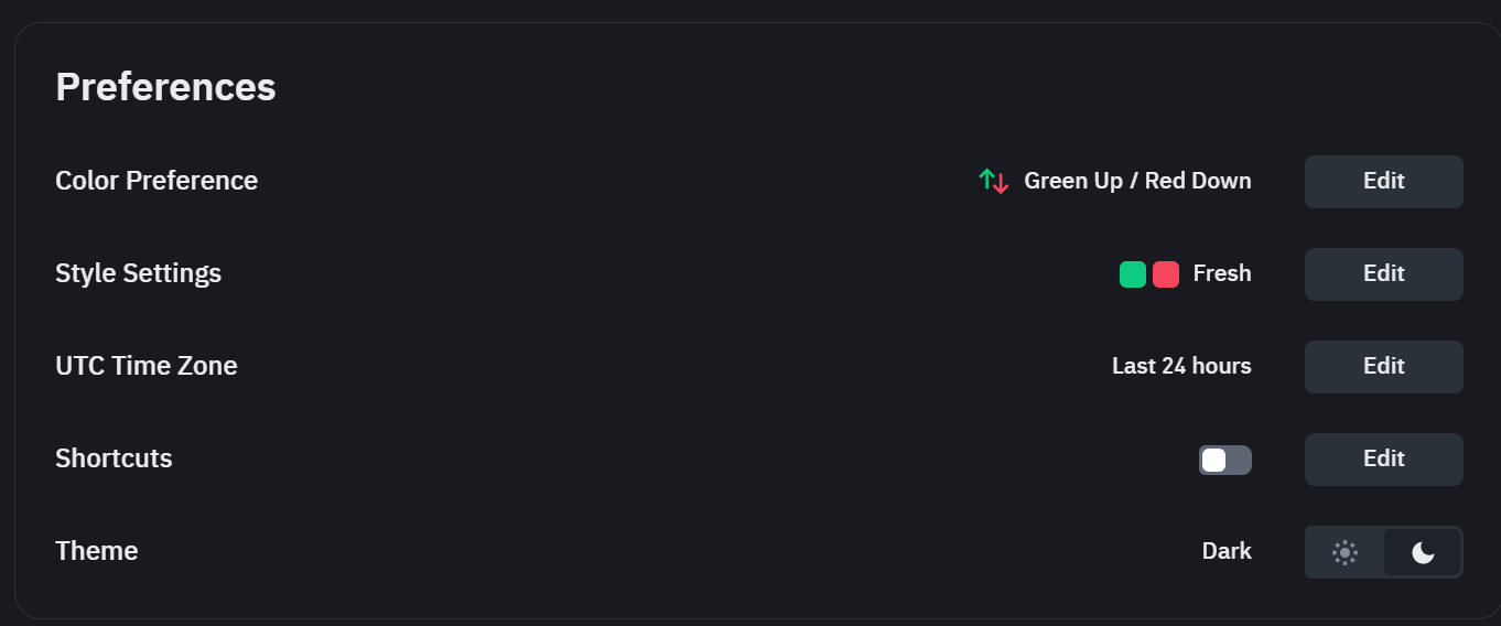 - "+" 또는 "-" 아이콘을 눌러 아이콘을 추가하거나 제거합니다. 지갑, 거래, 특정 마켓 보기 등 최대 7개의 단축키를 추가할 수 있습니다