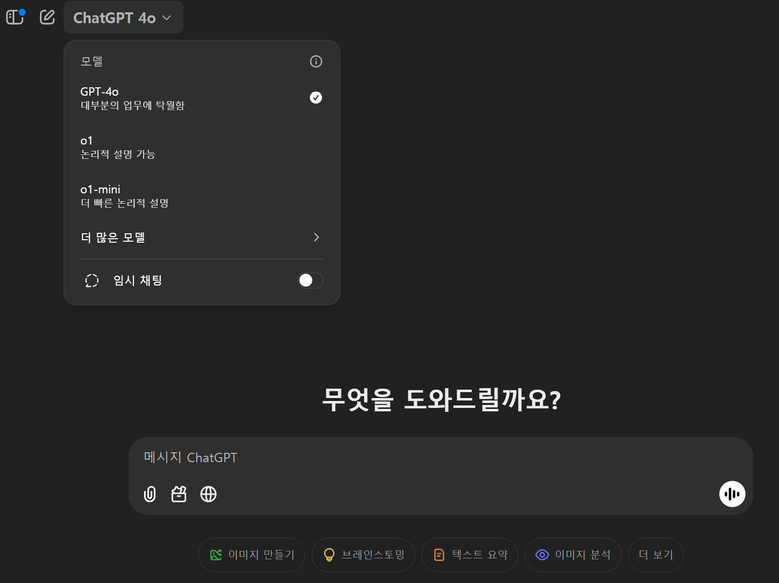 위의 기능이 필요하다면 GPT-4o로 전환해야 합니다