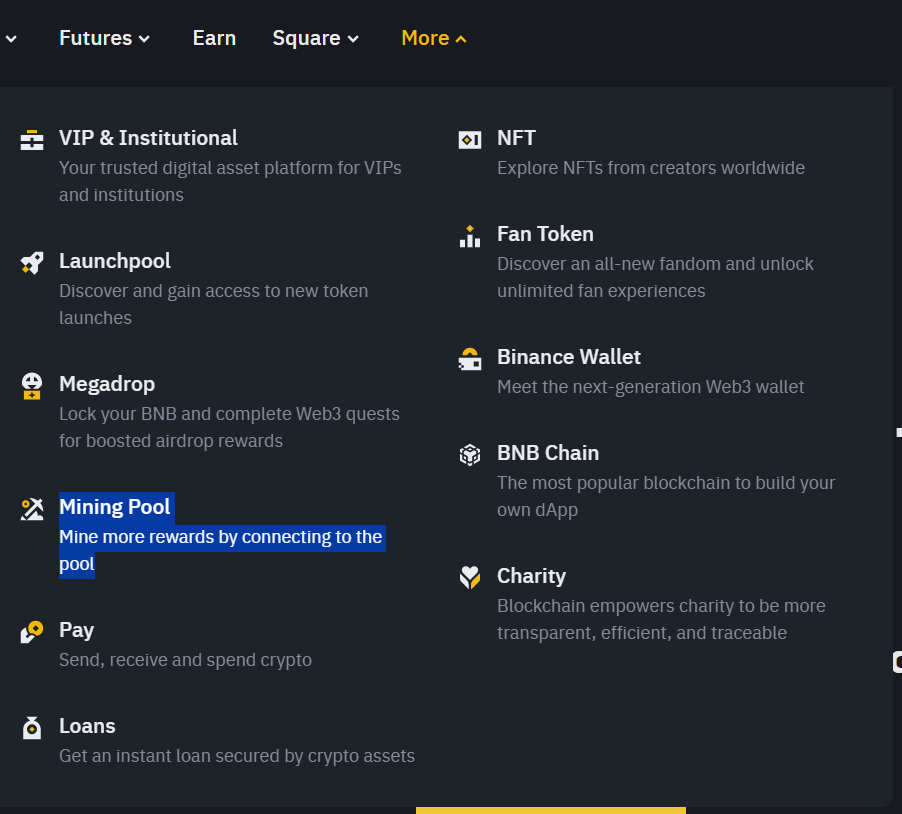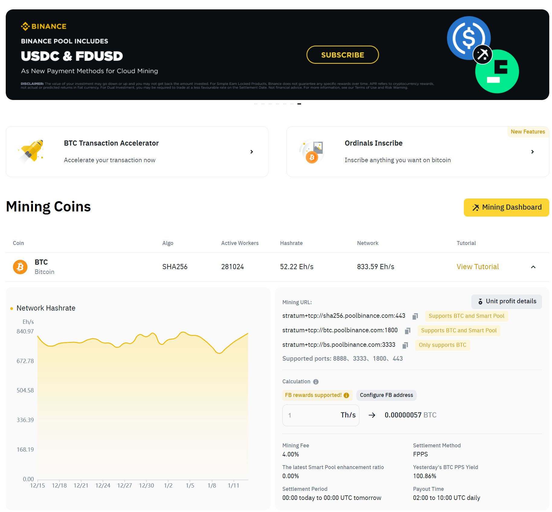 - 바이낸스 마이닝 풀 페이지에서 마이닝 계정을 생성합니다