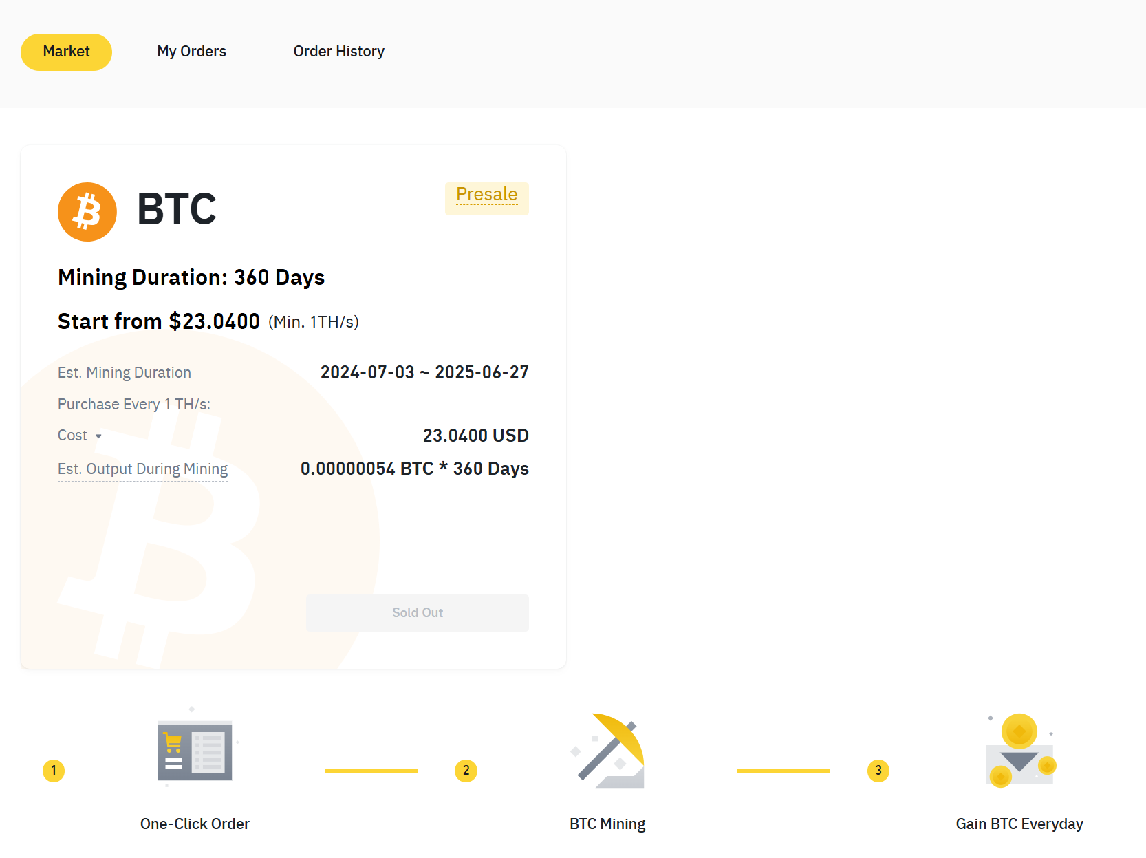 바이낸스는 다양한 기간과 전력 요금이 포함된 클라우드 마이닝 제품을 제공합니다