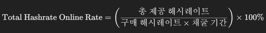 Total Hashrate Online Rate는 구매한 클라우드 마이닝 제품의 가동률을 나타내는 지표입니다