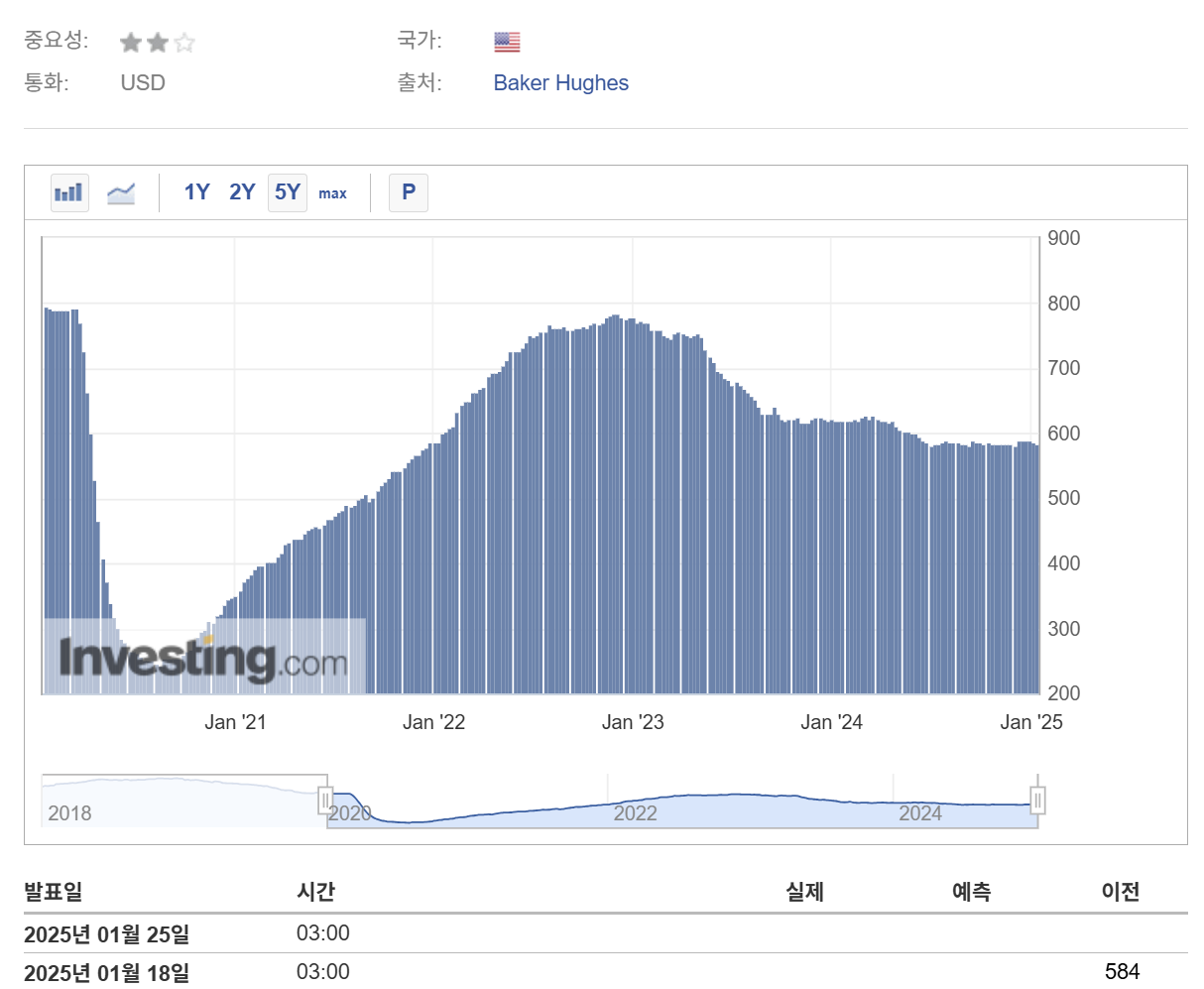 - 이 지표는 석유 및 가스 산업의 활동 수준을 나타내며, 원유 생산량 및 공급과도 밀접한 연관이 있습니다