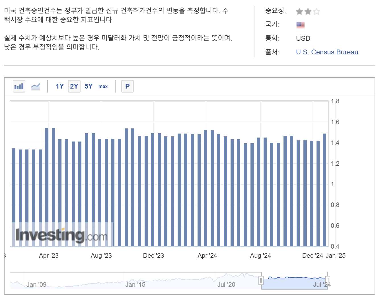 - 건설사의 신규 건설 의향을 파악할 수 있는 선행 지표로, 주택 시장뿐만 아니라 건설·자재·주택금융 등 관련 산업 전반의 경기 동향을 가늠하는 데 사용됩니다