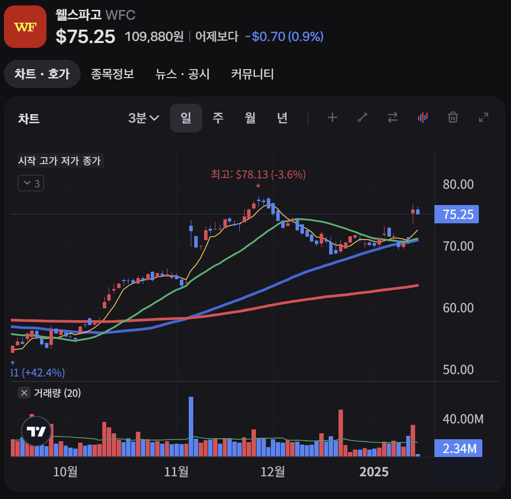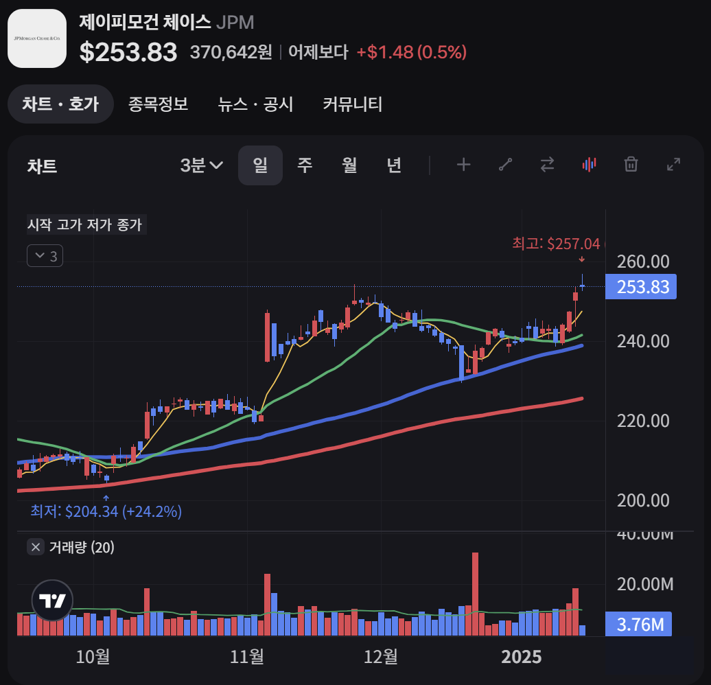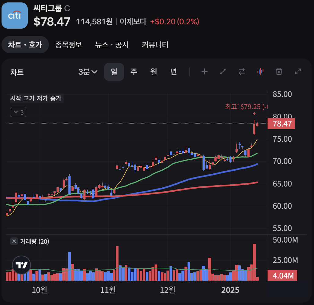 실적 발표 후 주가는 약 4% 상승하며, 같은 날 발표된 타 금융주 대비 상대적으로 양호한 상승폭을 보였습니다
