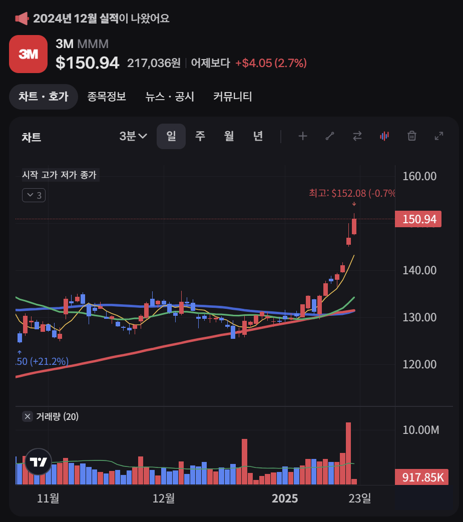 [3M 2024년 4분기 실적 발표] 주가 반등과 2025년 전망 정리