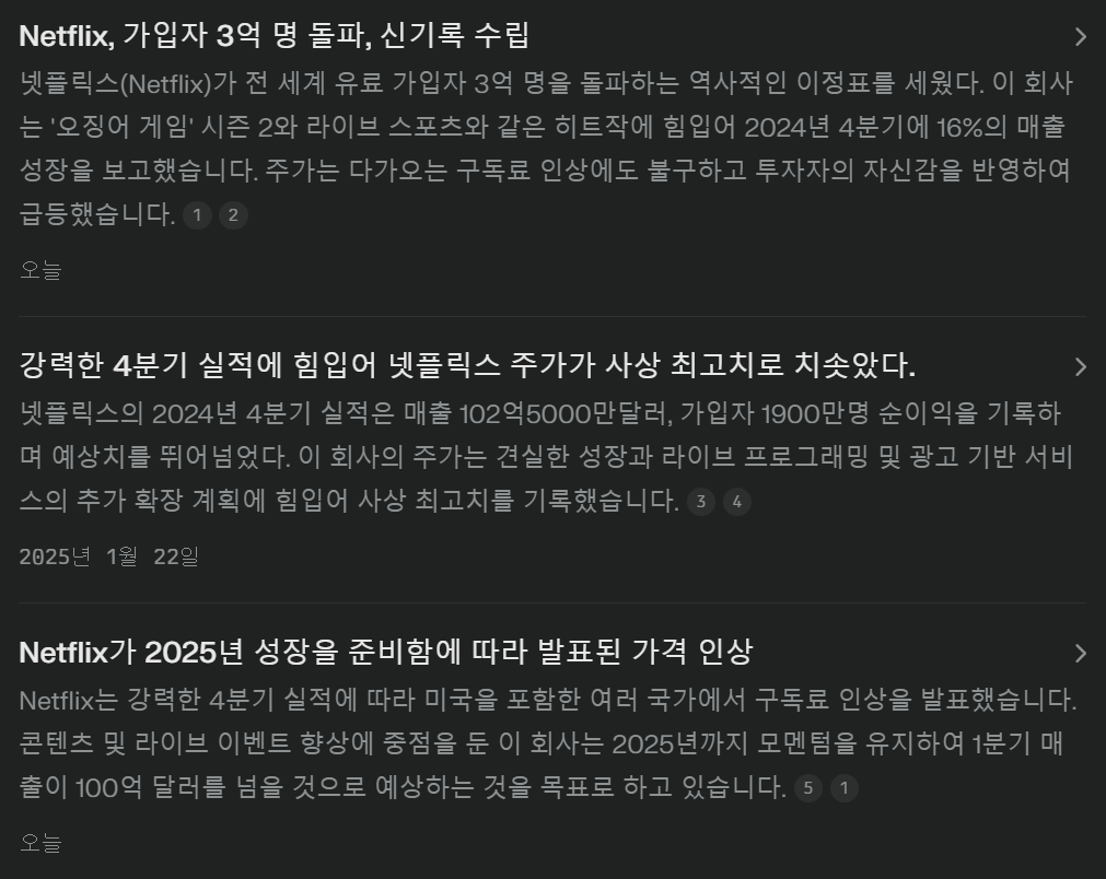 - 구독료 인상: Netflix는 여러 시장에서 다양한 요금제를 인상하며, 가격 책정 능력에 대한 자신감을 나타냈습니다