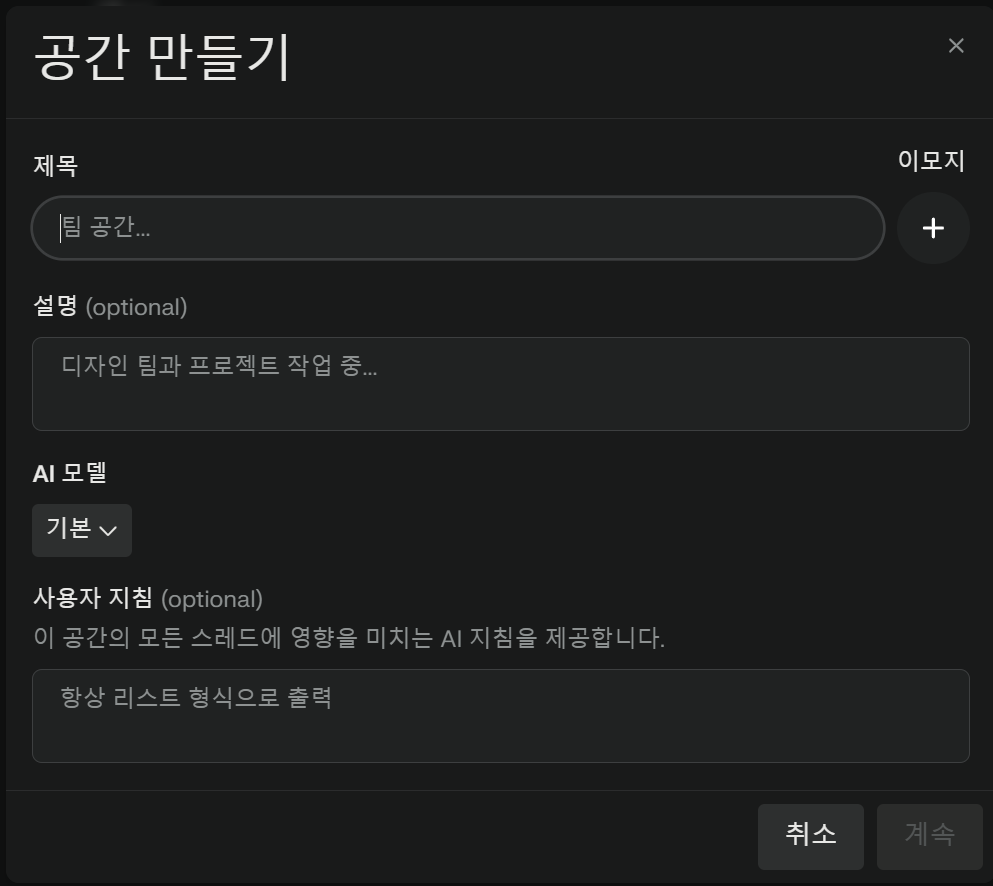 - 제목: 공간의 목적을 반영한 이름 설정 (예: “2025 마케팅 전략”).