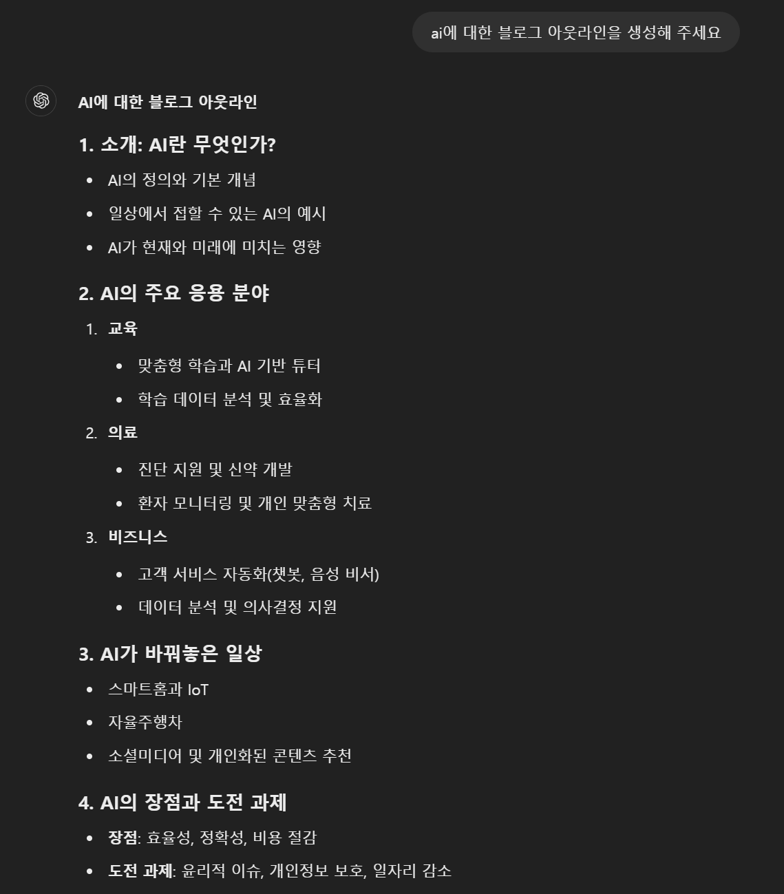 | 2025년 오픈 ai chatgpt로 블로그 글 쓰기 실습, 특정 주제로 글 써보기 (0) | 2025.01.25 |
