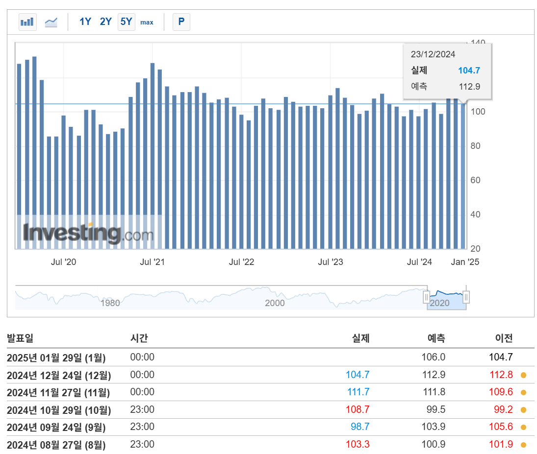 • 지수 하락: 향후 경기나 고용시장에 대한 우려가 커져 지출 의향이 떨어질 가능성이 큼