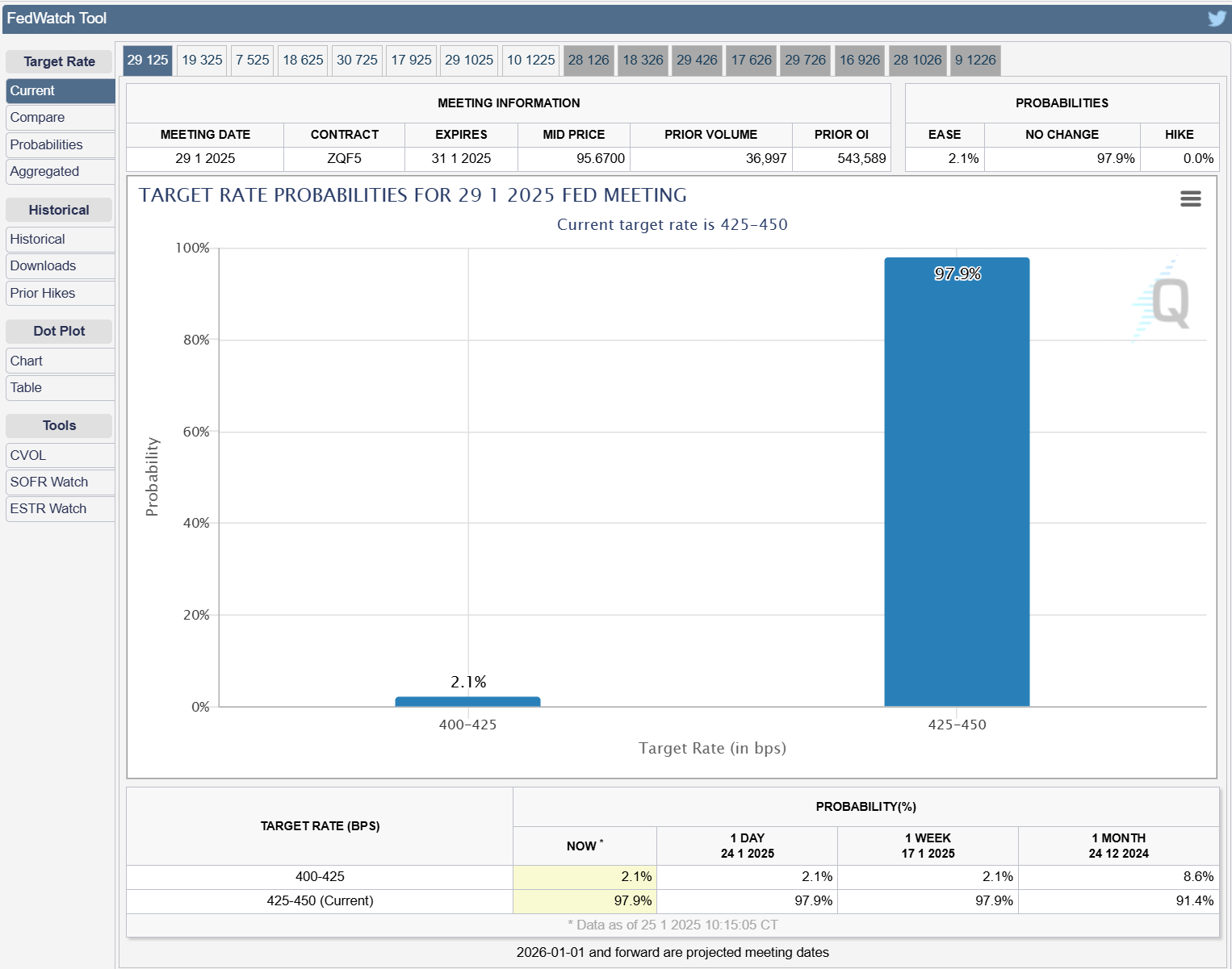 현재는 애널리스트들과 시장 참가자들의 컨센서스는 연준이 금리를 4.25%-4.50%로 안정적으로 유지할 것이라 예상하고 있습니다. 만약 연준이 예상대로 금리를 유지한다면, 그 결과는 이미 가격에 반영되어 있기 때문에 시장은 즉각적인 반응이 제한적일 수 있습니다
