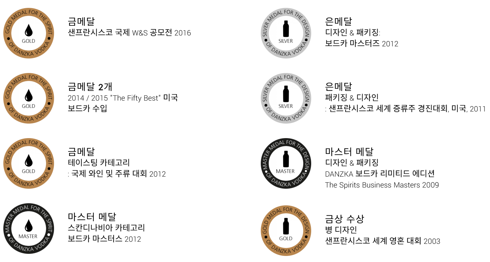 국제 주류 대회에서도 뛰어난 품질과 독특한 병 디자인으로 다수의 상을 수상하며, 글로벌 시장에서 덴마크의 자부심으로 인정받고 있습니다