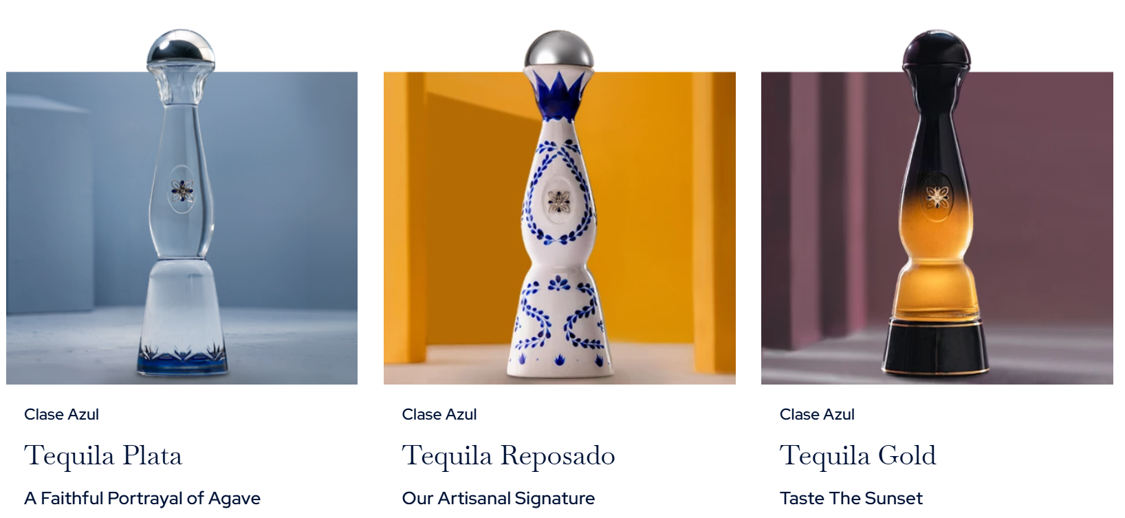 클라세 아줄은 숙성 기간과 제조 방식에 따라 다양한 데킬라 라인업을 제공합니다