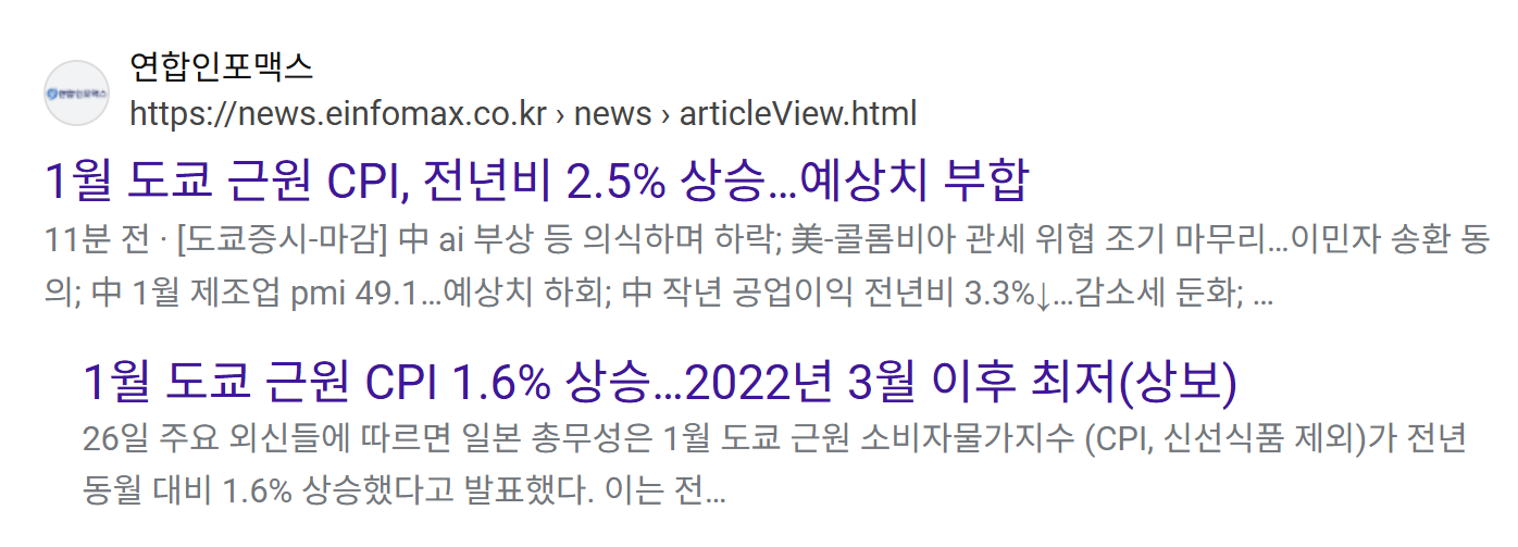 도쿄 소비자물가지수(CPI)는 일본 전국 인플레이션을 가늠하는 선행 지표로 평가받습니다- 코어 CPI(신선식품 제외): 전년 대비 2.5% 상승 전망 (직전 2.4% 대비 소폭 상승)