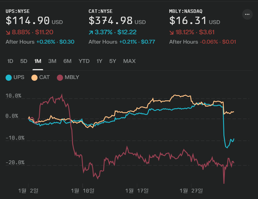 UPS, Caterpillar, 그리고 Mobileye와 같은 산업 선도 기업들은 각기 다른 분야에서 글로벌 시장을 주도하고 있으며, 최근 실적 발표 후 투자자들의 관심을 받고 있습니다