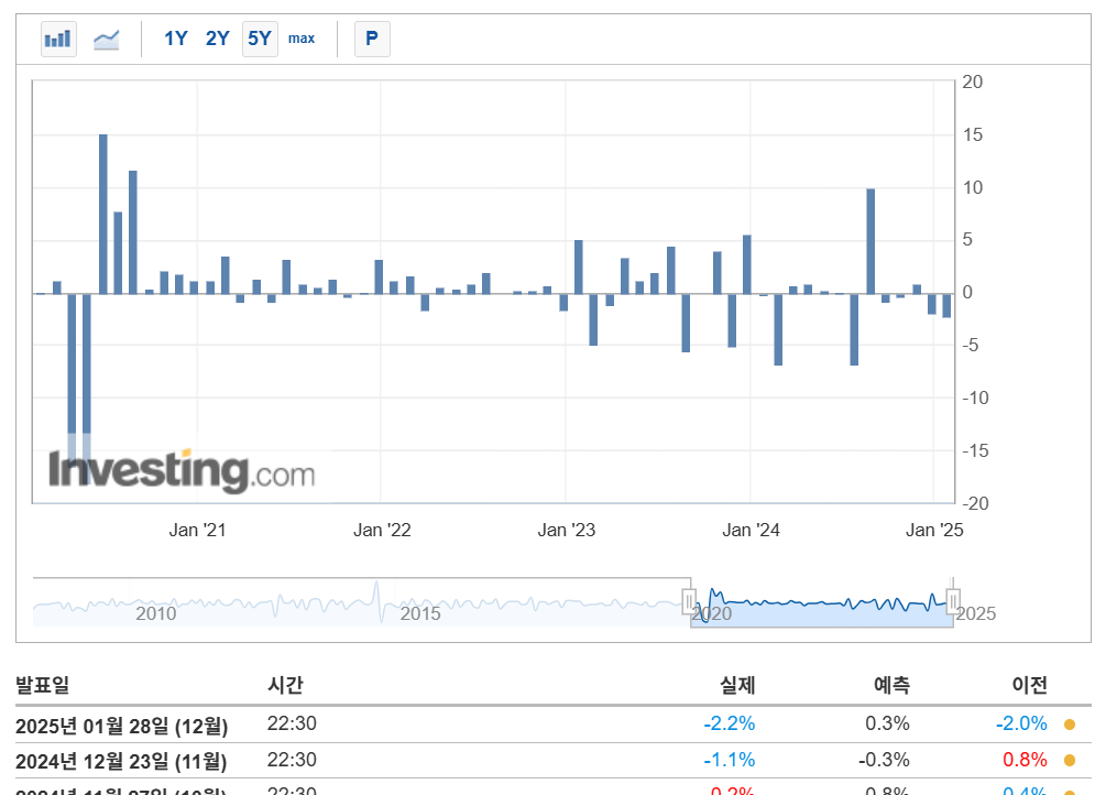 내구재수주는 기업들이 자동차🚗, 항공기✈️, 기계류 등 장기간 사용되는 제품에 대한 주문량을 얼마나 늘렸는지를 보여줍니다. 이 지표는 기업들의 투자 의지와 경기 전망을 반영하기 때문에 매우 중요한 산업 경기 지표입니다