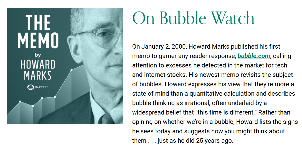 Howard Marks의 메모는 단순히 과거의 버블 사례를 회고하는 데 그치지 않습니다