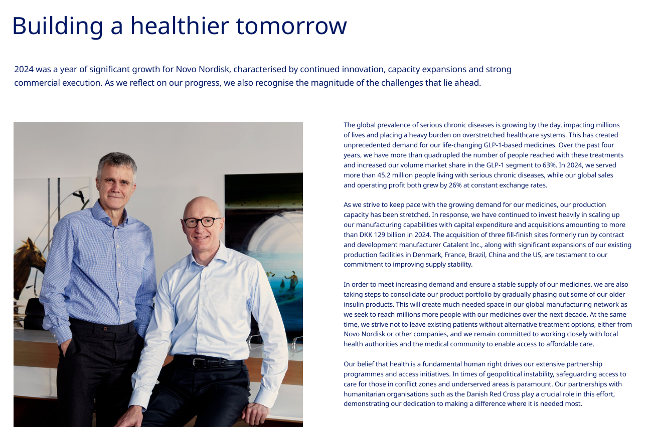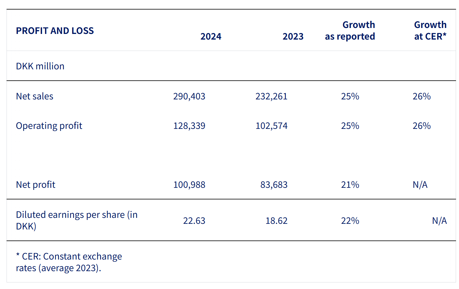 노보 노디스크는 2024년 4분기 실적에서 전년 분 대비 29% 증가한 순이익을 기록했으며, 매출은 30% 상승했습니다. 특히 비만 치료제 Wegovy의 판매가 연간 107% 급증하면서 실적을 견인했습니다