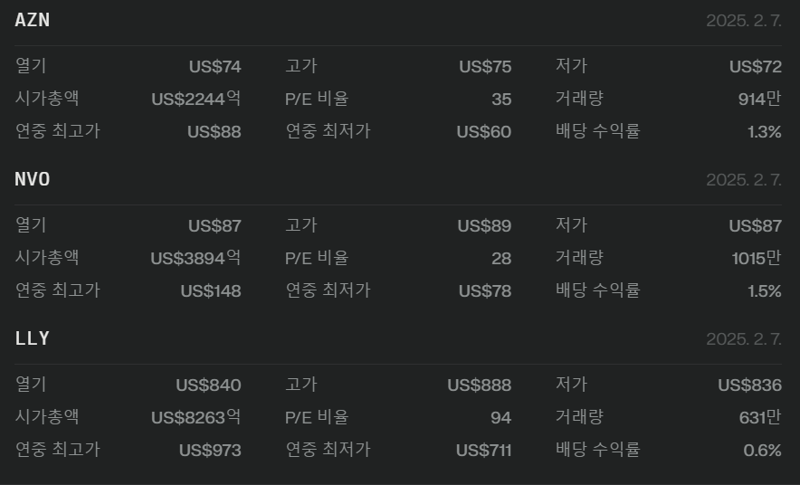 노보 노디스크와 일라이 릴리는 비만 및 당뇨 치료제 시장에서 강력한 입지를 유지하고 있으며, 아스트라제네카는 종양학 및 기타 치료 영역에서 안정적인 성과를 내고 있습니다. 투자자들은 각 기업의 성장 가능성과 리스크를 고려하여 투자 전략을 세우는 것이 중요합니다