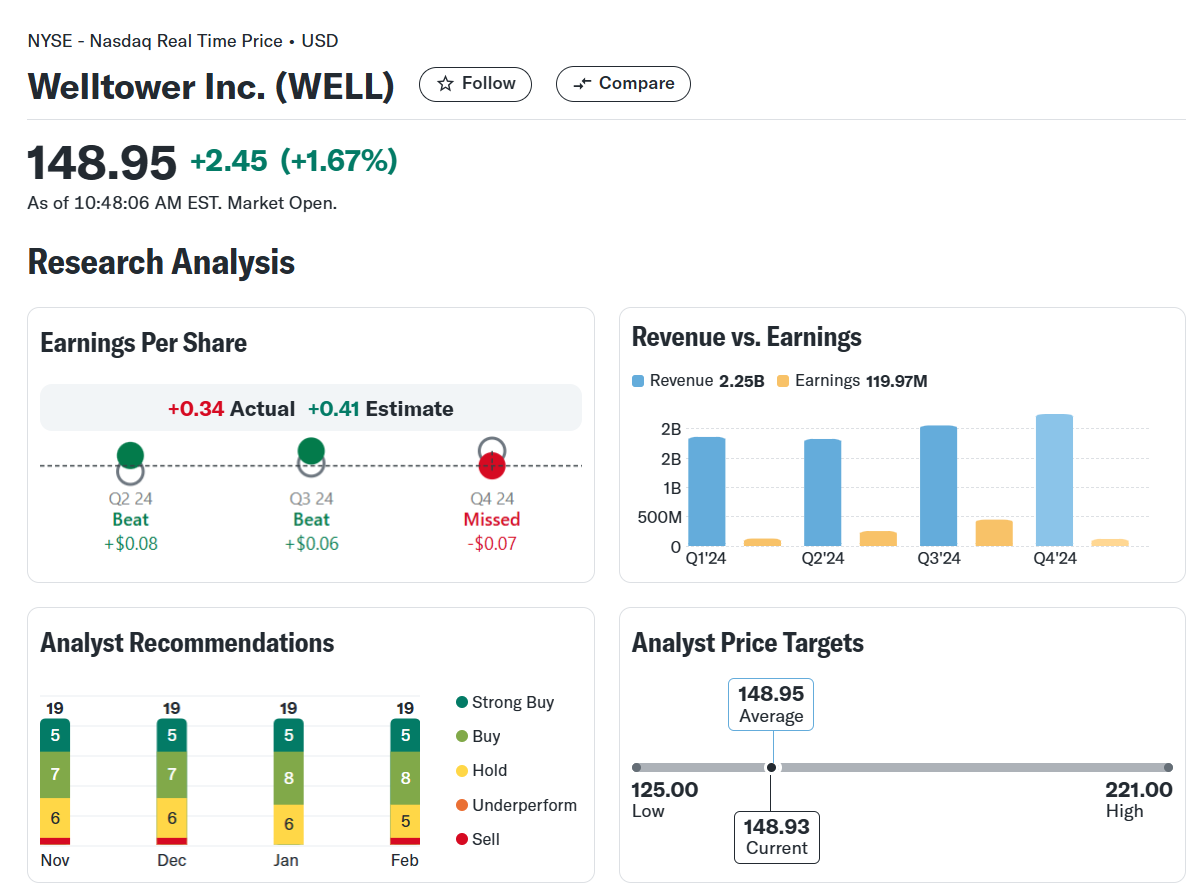 Welltower는 헬스케어 인프라에 특화된 부동산 투자 신탁(REIT)으로, 미국, 캐나다, 영국 등지에서 시니어 주거시설, 후속 치료 시설, 외래 진료 시설에 투자하며 높은 성장 잠재력을 보유하고 있습니다