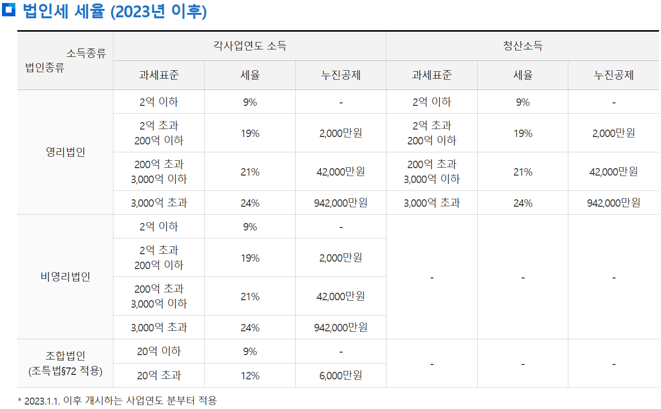 - 개인사업자는 소득세율이 누진 구조(6~45%)로 되어 있어, 매출이 증가할수록 세금 부담이 급격히 커집니다