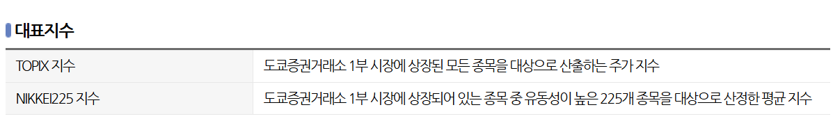 일본 주식 시장에는 두 가지 대표적인 지수가 있습니다