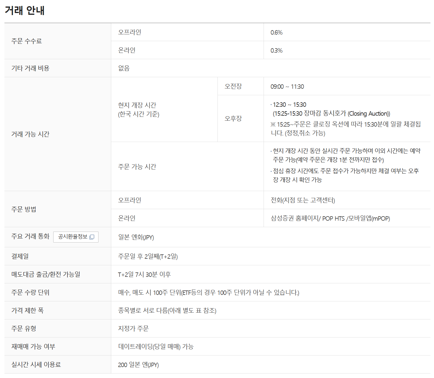 일본 주식 시장의 거래 시간은 다음과 같습니다