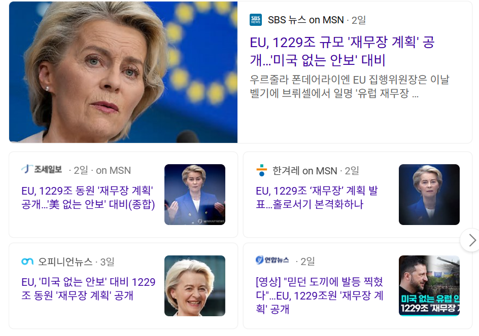 - 관세전쟁 리스크: 미국이 EU산 제품에 대해 상호관세 부과를 예고하면서, 독일을 비롯한 유럽 국가들은 자국 경제의 자립성과 안정성을 강화할 필요성을 느끼게 되었습니다