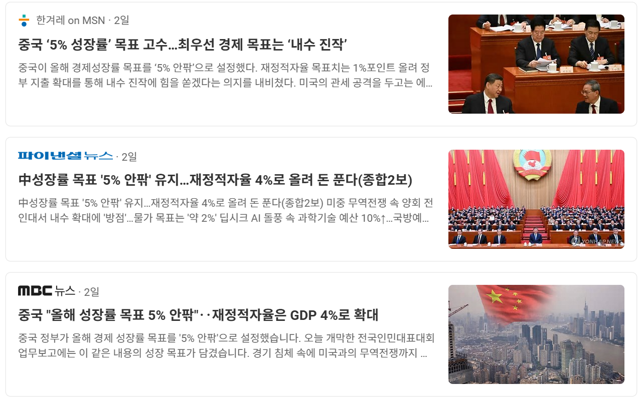 | ls증권 자료 읽어보기 , 트럼프 관세폭탄에도 5% 성장? 2025 중국 전인대 내수 반격 카드 (0) | 2025.03.10 |